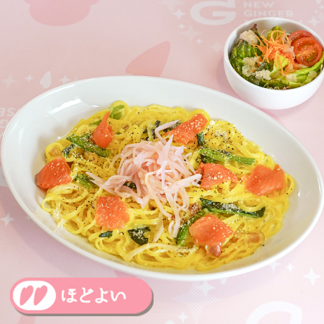 岩下の新生姜とスモークサーモンの彩りカルボナーラ(ミニサラダ付き)