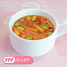 岩下の新生姜入りで彩り豊かな具だくさんスープをトマト仕立てに。