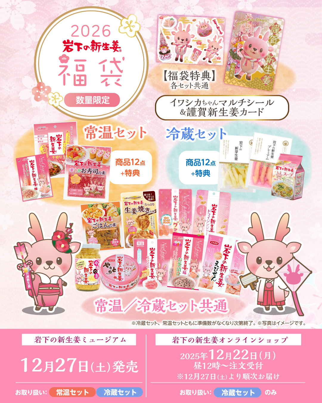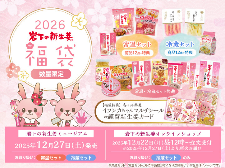 【12月27日~1月12日】年末年始の食卓に!「岩下の新生姜福袋2026」を岩下の新生姜ミュージアムとオンラインショップで販売。オンラインショップは12月22日受付開始、12月27日から順次お届け。