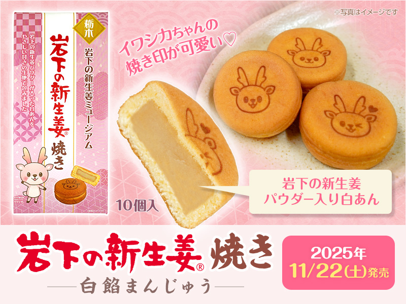 ほんのり生姜風味の白あんをやさしい甘さのカステラ生地で包んだ「岩下の新生姜焼き-白餡まんじゅう-」を、岩下の新生姜ミュージアムと岩下の新生姜オンラインショップで2025年11月22日に発売します。