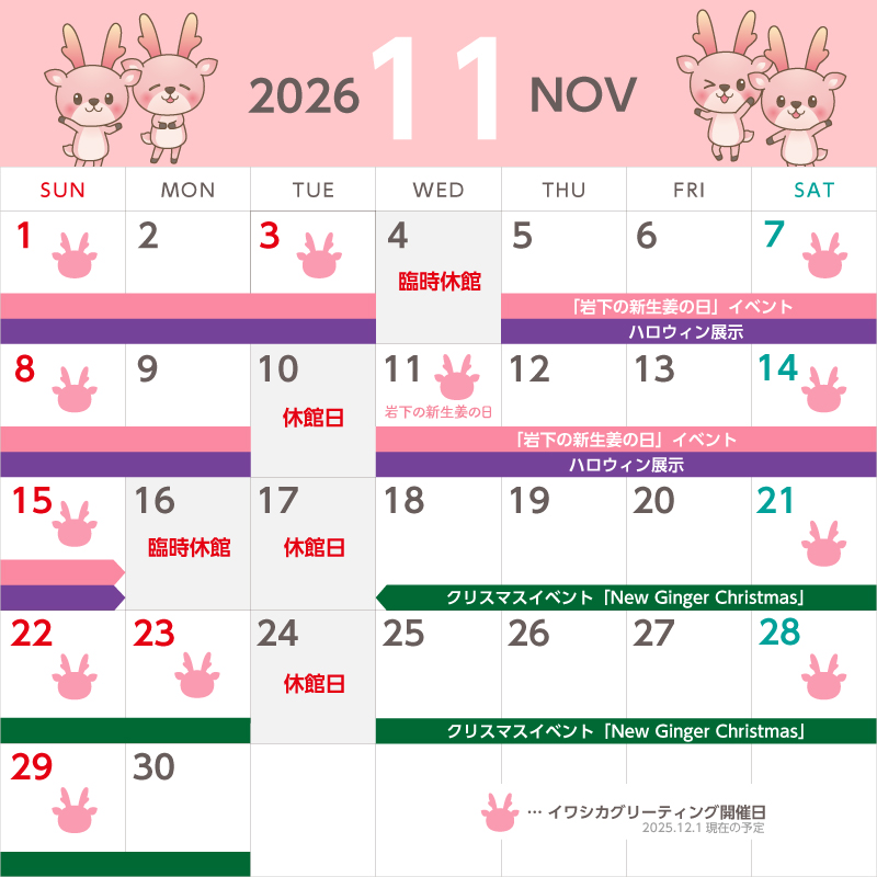 ●イワシカちゃんグリーティング…土日祝日に加え、11月11日(水)も開催します。
