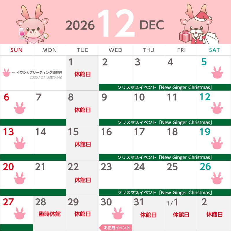 ●イワシカちゃんグリーティング…土日祝日に加え、12月30日(木)も開催します。