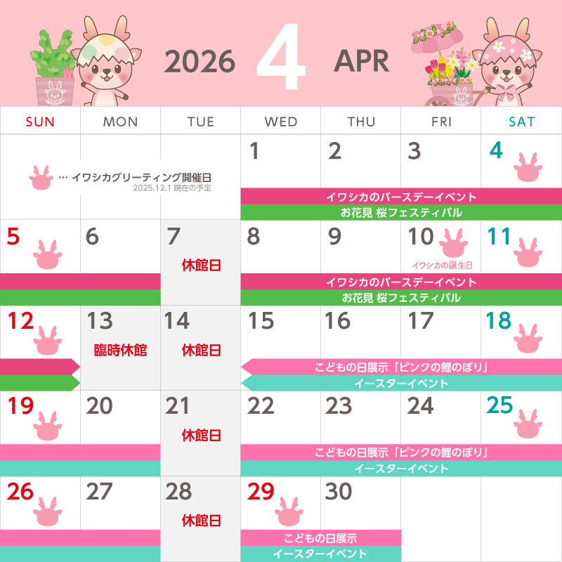 ●イワシカちゃんグリーティング…土日祝日に加え、4月10日(金)も開催します。