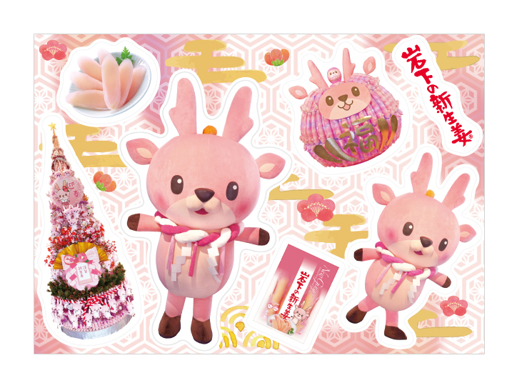 イワシカちゃん(実写)とお正月素材をデザインしたオリジナルマルチシールとオリジナルカード付き。