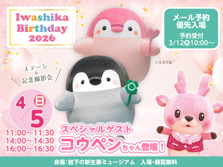 【4月10日はイワシカのお誕生日】3/18~4/12バースデーイベント開催。スペシャルゲストとステージ&撮影会も。[3/28さのまる・3/29とち介・4/5コウペンちゃん・4/11ハートりん&アカりん]*キャライベントは事前予約で優先入場